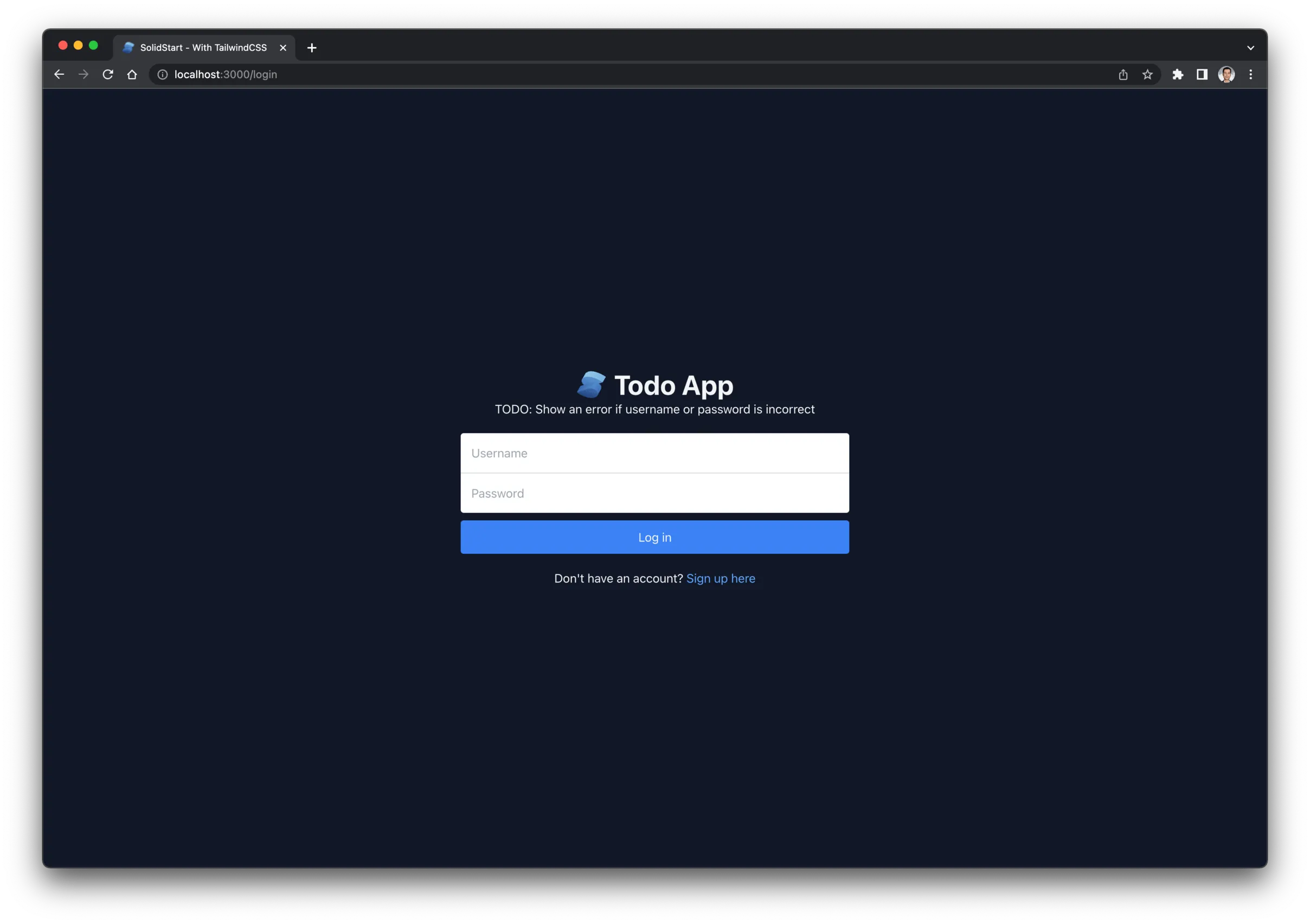 To focus on the concepts and the workflow of building a SolidStart app, we’ll build a simple Todo app.